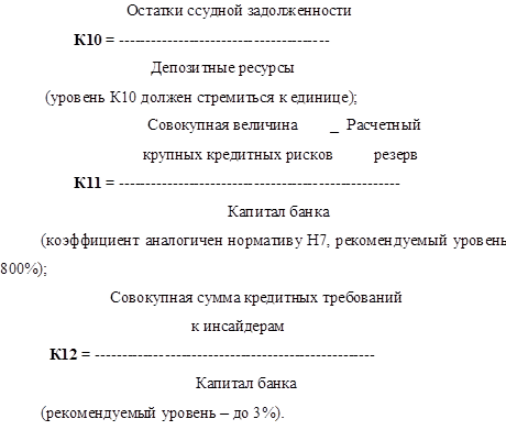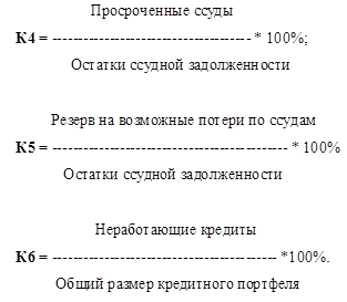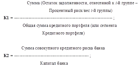 Агрегированным показателем оценки степени кредитного риска портфеля является соотношение Суммы остатка задолженности по ссудам и активам кредитного характера, отнесенных к i -той категории качества, уменьшенной на процент риска по i -той категории к Общей сумме кредитного портфеля. Оценить степень кредитного риска портфеля, а также защиту банка от него позволяют показатели, определяющие долю просроченных ссуд, неработающих кредитов, убытков по ссудам в остатках ссудной задолженности, соотношение фактического и расчетного резерва на покрытие убытков по ссудам.