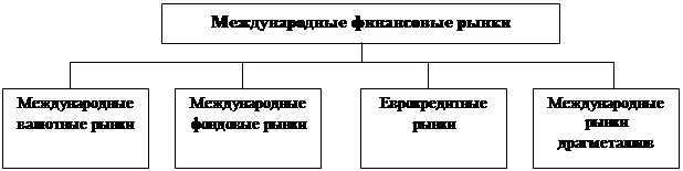 Международные финансовые рынки (МФР) представляют собой международные операции по купле-продаже финансовых инструментов. Они могут быть как сосредоточенными в одном месте (например, в Лондоне, Нью-ЙоРФе или Сингапуре), так и рассредоточенными (как система электронной валютной торговли FOREX). Под международными здесь понимаются операции, в которых участвуют лица из разных стран. Если трансакция совершается между резидентами одной страны, то она относится к национальному рынку, даже если объектом торговли является иностранная валюта. Тем не менее, между национальными и международными рынками существует тесное переплетение и взаимосвязь.