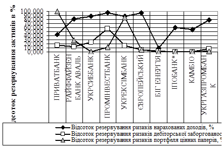 | Процентні втрати активів на створення резервів зменшення банківських ризиків, % | 1,107 | 1,669 | 2,757 | 3,813 | 3,046 |