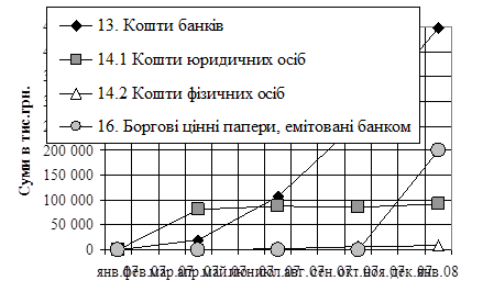 | Базовий темп росту залучених коштів пасивів балансу, % (відносно рівня 01.01.2007) | 100,000 | 44 283,621 | 86 306,897 | 150 875,000 | 325 602,155 |