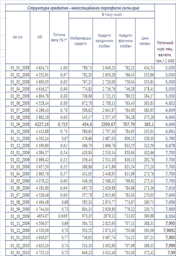 - проаналізовані особливості управління вартістю кредитного портфелю банку в умовах динаміки наслідків впливу світової фінансової кризи 2008 -2009 рр.;
