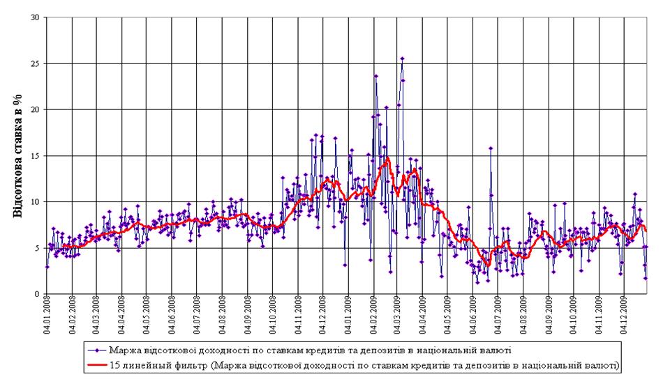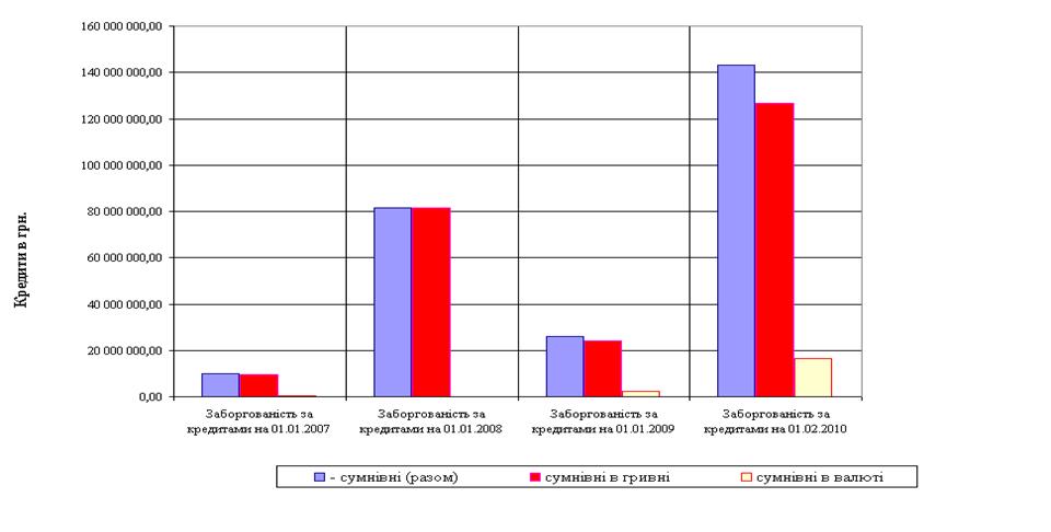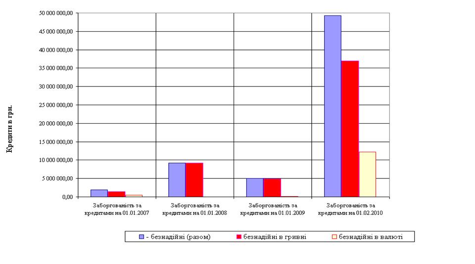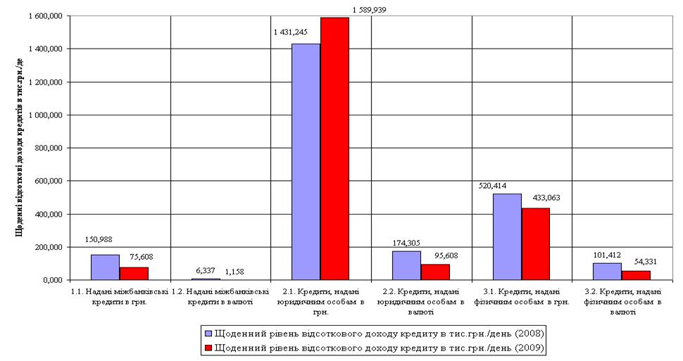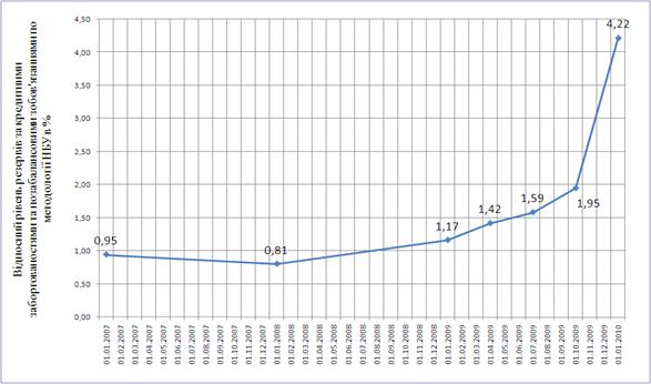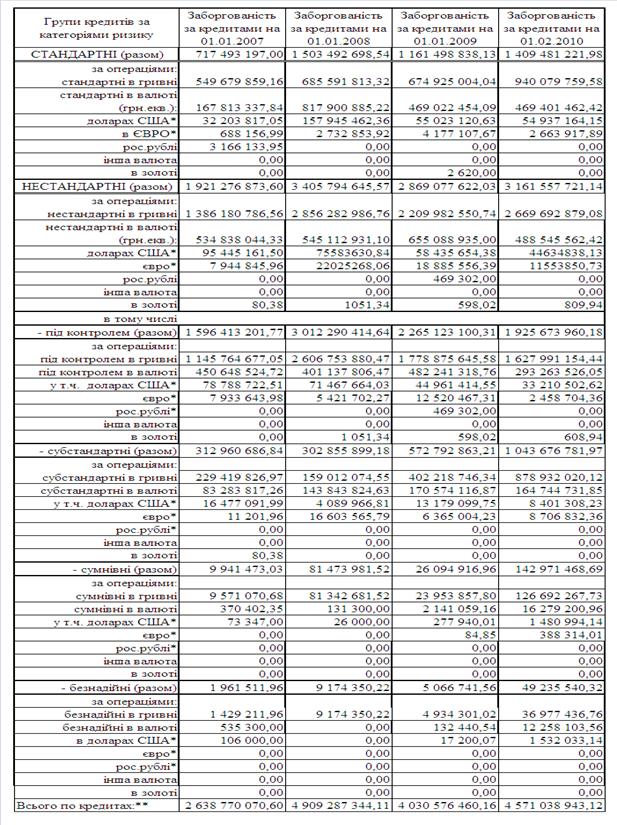 Аналіз впливу наслідків світової фінансової кризи на прибутковість та ризикованість кредитної діяльності банківської системи України у передкризовому 2007 та кризових 2008 – 2009 років за даними НБУ показав, що з рівня резервування кредитних ризиків в сумарному кредитному портфелі банківської системи України – 4,0% (2005 - 2007 рр.) його величина зросла на протязі 2008 – 2009 рр. до рівня 15,4% станом на початок 2010 року, при цьому вперше за останні 10 років діяльність банківської системи України стала збитковою, а сумарний збиток практично 50% банків України за 2009 рік становить -23,5 млрд.грн..