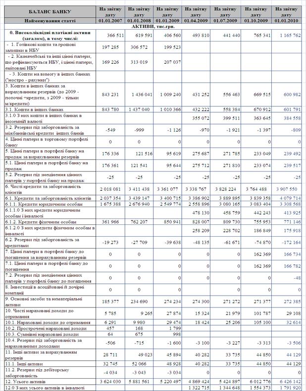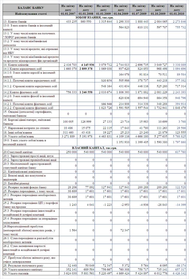 Результати аналізу розвитку та фінансової результати діяльності ПАТ КБ «Хрещатик» за 2006 – 2009 рр