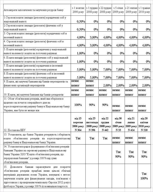 Управління обов’язковими резервами залучених та запозичених ресурсів банків Національним банком України у період кризи 2008 – 2009 рр (нормативи обов’язкового резервування ресурсів)