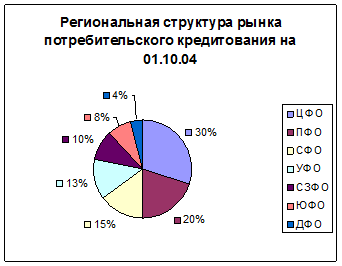 Рисунок 2.1. – Региональная структура рынка потребительского кредитования на 01.10.04