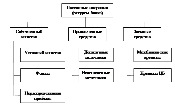 · пассивные операции, состоящие в формировании ресурсной базы банка;