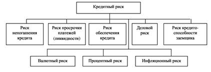 Причем к кредитным рискам относятся такие виды рисков как: риск непогашения кредита, риск просрочки платежей, риск обеспечения кредита и т.д. (рис. 1.1).