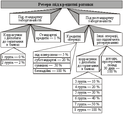 Формування резерву під кредитні ризики розглядається як один з найважливіших способів підвищення надійності комерційних банків. Діяльність зі створення резервів на відшкодування втрат за кредитними операціями комерційних банків в Україні було розпочато в 1995 р. Існуюча до цього практика списання безнадійної кредитної заборгованості без визначення конкретних джерел покриття призводила до виникнення значних розбіжностей між реальним капіталом банків та величиною капіталу, відображеного у фінансовій звітності. За таких умов саме існування банківської системи перебуває під загрозою, а іноземні інвестори не можуть довіряти фінансовій звітності банків і тому зменшують свій ризик, обмежуючи кредитування та висуваючи вимоги щодо готівкового забезпечення акредитивів.