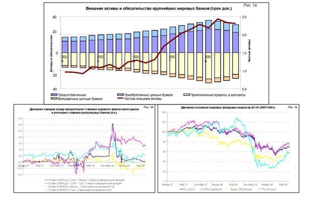 Ухудшение положения отдельных банков и хеджфондов привело к общему снижению доверия к финансовому сектору и дезорганизации мирового денежного рынка. Продажи ценных бумаг банками и компаниями, испытывавшими дефицит ликвидности, привели к ухудшению ситуации на мировом фондовом рынке (рис. 1). Падение котировок ценных бумаг, в свою очередь, сделало необходимым масштабное внесение дополнительного обеспечения по кредитам и сделкам РЕПО, обеспеченным ценными бумагами (так называемыми margin call), либо их досрочное погашение. Это привело к дальнейшему ухудшению положения крупнейших транснациональных финансовых институтов, в ряде случаев завершившемуся их банкротством или национализацией.