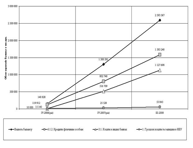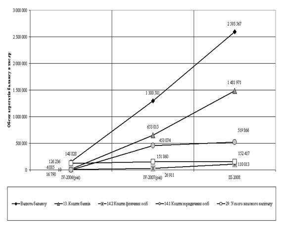 Динаміка агрегатів балансу ТОВ „Банк Ренесанс капітал” за 2006 -2008 роки