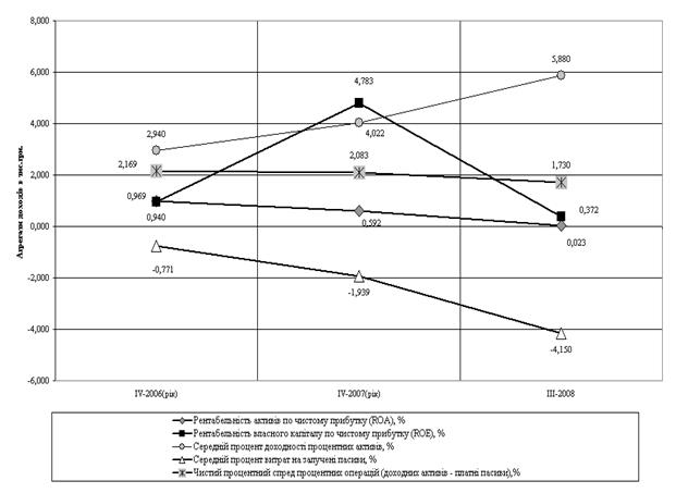Рис.2.7 Динаміка рентабельності ТОВ „Банк Ренесанс капітал” за 2006 -2008 роки