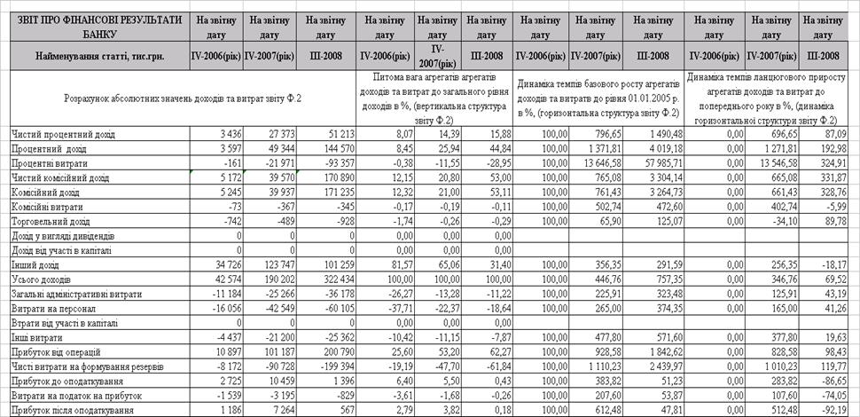 Динаміка агрегатів доходів та витрат ТОВ „Банк Ренесанс капітал” за 2006 -2008 роки