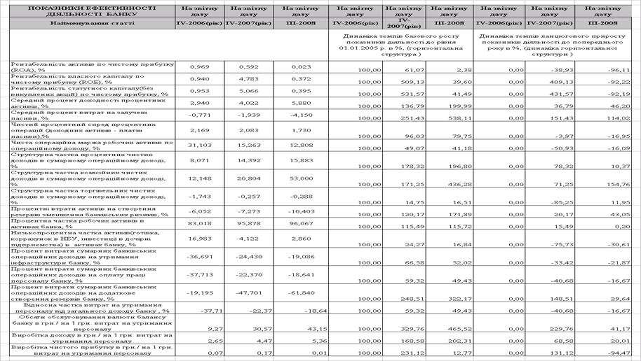 Динаміка показників ефективності діяльності ТОВ „Банк Ренесанс капітал” за 2006 -2008 роки