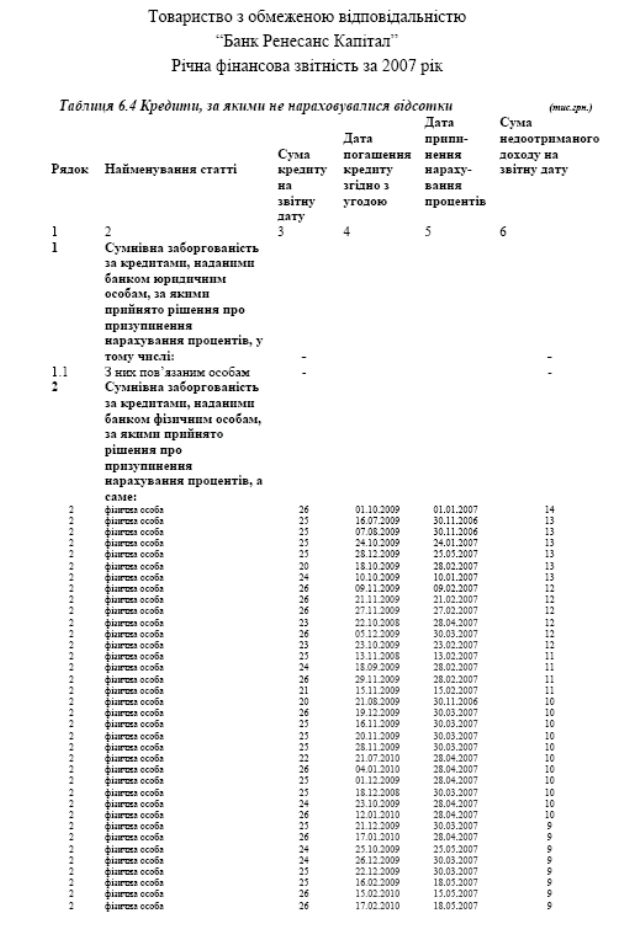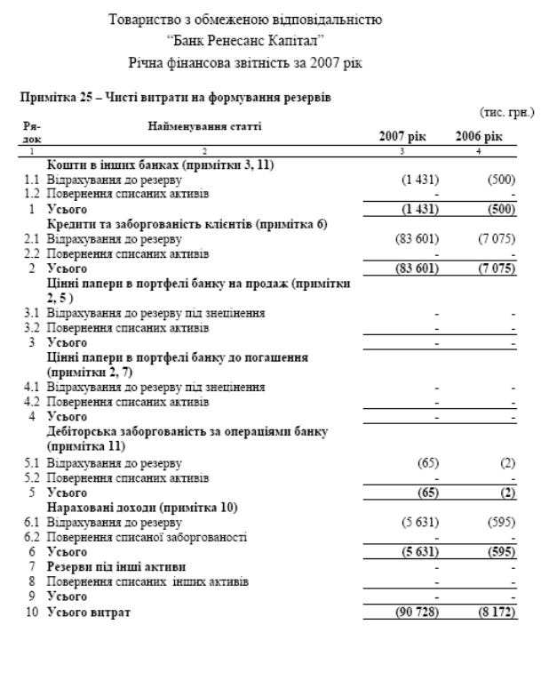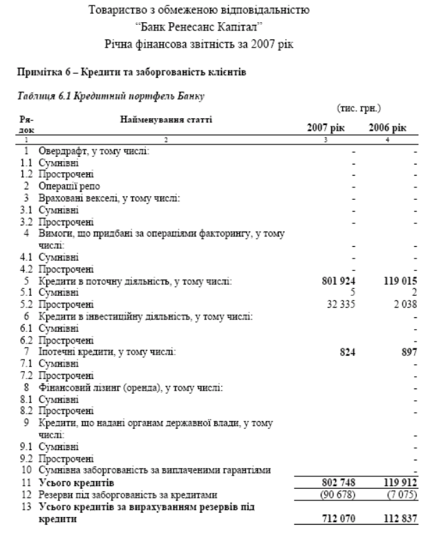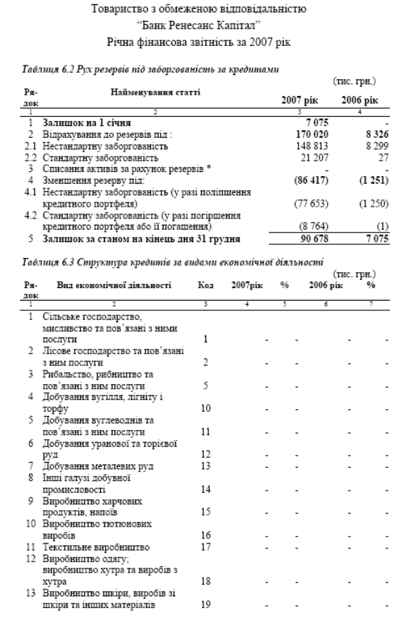 Звітність по кредитному ризику та резервуванню в за 2006 -2007 роки