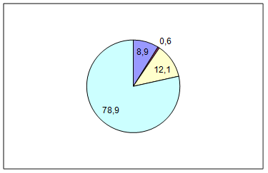 0,6 - органи державного управління 8,9 - НБУ та інші банки 12,1 - фізичні особи 78,9 - суб'єкти господарювання