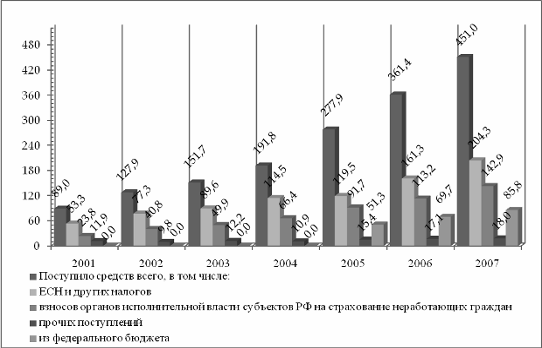 Многое было сделано в рамках межведомственной рабочей группы по взаимодействию Минздравсоцразвития России, ФНС России и Федерального фонда ОМС в планировании и мобилизации единого социального налога, зачисляемого в доход бюджетов фондов ОМС. Это способствовало усилению администрирования единого социального налога. В результате в 2007 году впервые отмечен профицит бюджета ФОМС по поступлению налоговых платежей на сумму более 3 млрд. рублей (при общем объеме поступлений в размере 71 млрд. рублей). Уровень поступлений единого социального налога в территориальные фонды ОМС вырос на 25,9% и составил сумму в размере 125,1 млрд. рублей (в 2006 году - 99,3 млрд. рублей).