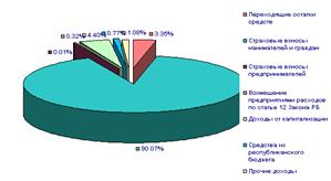 - возмещение расходов по выплате льготных пенсий (ст.12 Закона) - финансирование из республиканского бюджета - перераспределение средств Фонда - кредиты банков - прочие доходы из них: - начисленные проценты на остатки средств Фонда на счетах в банках - пени, штрафы - частичная оплата за путёвки |