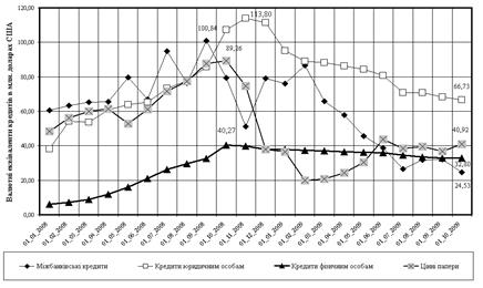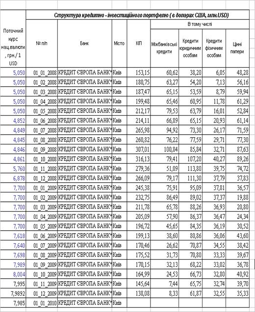 Динаміка та структура кредитно-інвестиційного портфелю ЗАТ „Кредит Європа банк” в доларового еквіваленту КІП в умовах різкої девальвації національної валюти в 2008 – 2009 роках