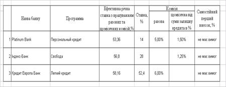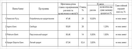 Умови споживчих кредитів “Простофінанс” станом на 01.12.2009 [83]