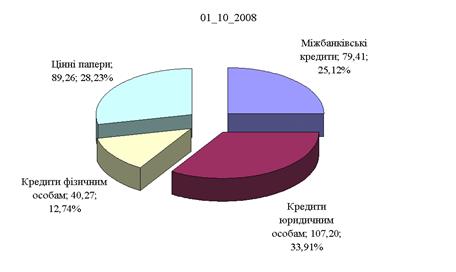 Рис.К.2. Структура кредитно – інвестиційного портфелю ПАТ „Кредит Європа банк” станом на 01.10.2008 (початок впливу світової фінансової кризи в БС України) (Систематизовано та побудовано автором самостійно)