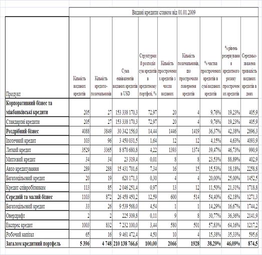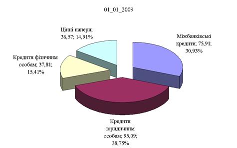 Рис.К.3. Структура кредитно – інвестиційного портфелю ПАТ „Кредит Європа банк” станом на 01.01.2009 (Систематизовано та побудовано автором самостійно)