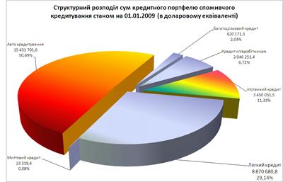 Споживче кредитування стає усе більш і більш цікавим видом бізнесу, як для банків, так і для небанківських фінансових установ. За даними експертів, станом на 01.01.2009 біля 85,7% обсягу споживчого кредитування приходиться на частку банківської системи, середня сума позики на одну людину в Україні складає приблизно 105 євро, що значно менше аналогічних показників країн Східної Європи – 790 євро в Польщі, а тим більше Західної Європи – 6058 євро в Германії та 9603 євро в Великобританії [88].
