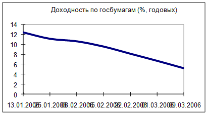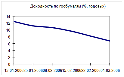 За рассматриваемый период на рынке государственных ценных бумаг наблюдалось резкое снижение доходности, что стало следствием превышение спроса над предложением: