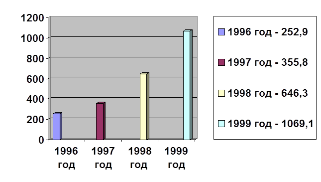 В 1999 году население активно пользовалось услугами Банка – переводами вкладов между его филиалами. За год совершено более 3 млн. переводов на сумму около 13 млрд. руб.
