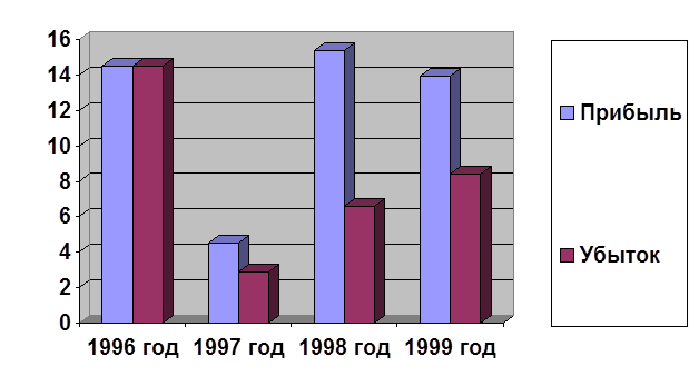 В период с 1996 года по 1999 год наблюдается заметный рост собственного капитала, это говорит о правильном ведении экономической деятельности банка.