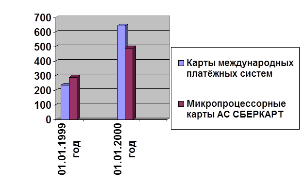 Наряду с традиционными формами обслуживания населения Сбербанк России активно внедряет и развивает современные банковские технологии. Его доля на рынке международных и Российских банковских карт оценивается 20 – 25% в части эмиссии банковских карт и около 15% по развитию сети приёма карт. Общее число распространённых банковских карт на конец 1999 года превысило 1,5 млн., а объём привлечённых средств на счета банковских карт составил в эквиваленте 2,2 млрд. руб.