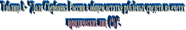 Таблица наглядно показывает, что основную долю на рынке частных рублёвых вкладов играет Сбербанк и он с каждым годом увеличивает свою значимость.