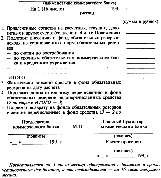 6 ПОЛОЖЕНИЕ о порядке формирования фонда обязательных резервов коммерческих банков и кредитных учреждении в Центральном банке Российской Федерации 13