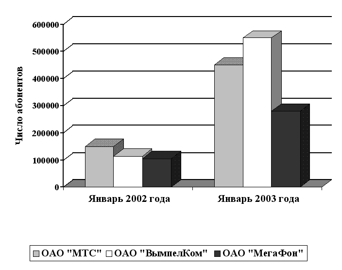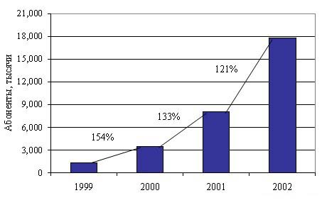 В 2001 году число абонентов сотовой связи увеличилось с 3,4 до 7,8 млн. человек. В 2002 году операторам сотовой связи удалось привлечь 9,8 млн. новых абонентов – больше, чем за все предыдущие десять лет существования сотовой связи в России.
