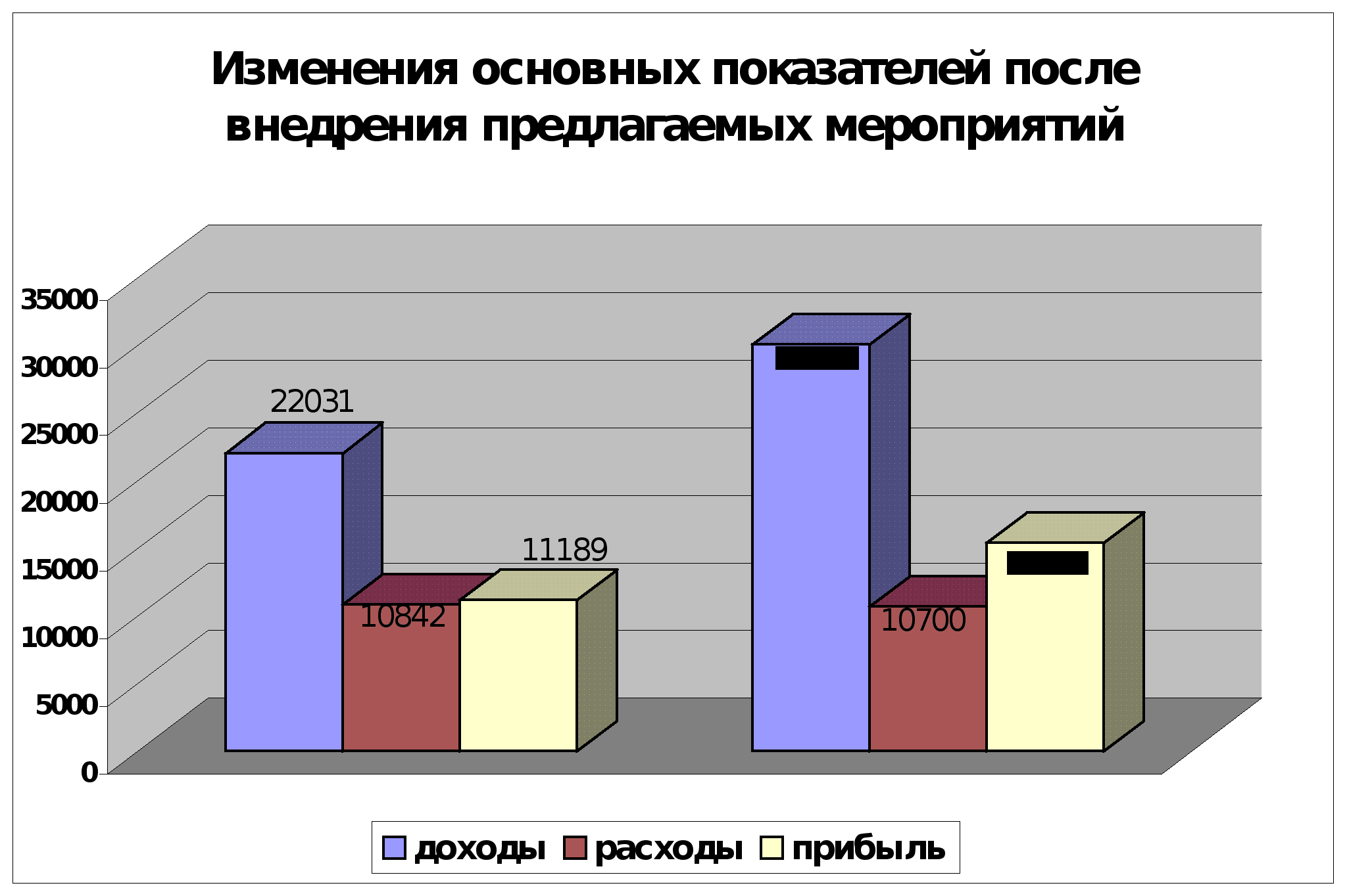 Рис.2.4.Изменение основных показателей от внедрения новых путей повышения доходности в 2000 году