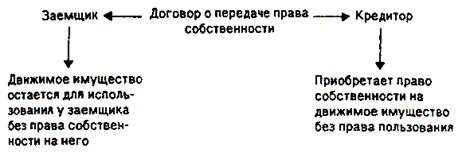 Для того чтобы движимое имущество могло быть в пользовании заемщика и в то же время служить гарантией возврата кредита, используется передача права собственности на него кредитору в обеспечение имеющегося долга.