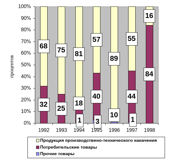 В России объем продукции, реализуемой на биржах, в общем производстве в 1991 году составлял 1%, а в 1993 г.– 2%, а по конкретным видам колебался от 0,05% до 6%. Таким образом, через биржи происходит незначительный товарный поток.