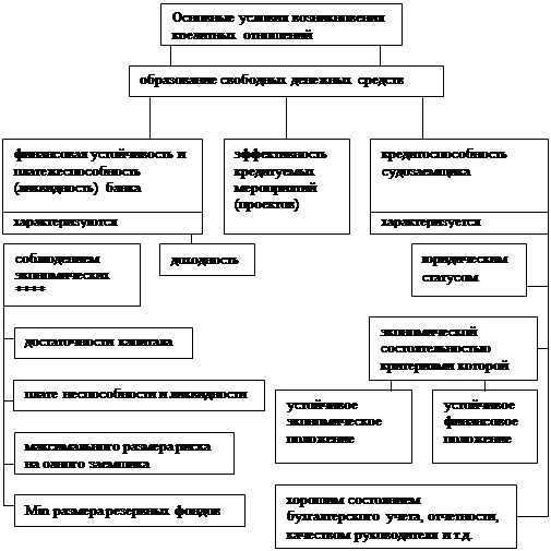 Наиболее ярким примером взаимодействий банка с партнерами могут служить кредитные отношения, возникновение которых обусловливается такими условиями, как: