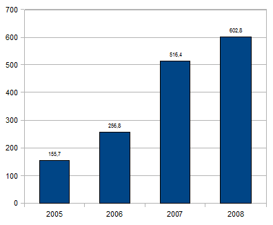 «Темпы роста рынка факторинга в 2005 - 2008 гг.