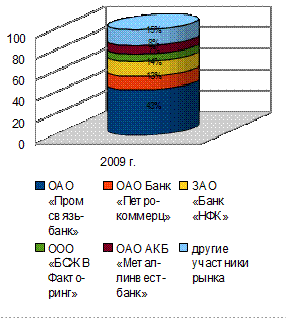 Приложение 9 «Концентрация рынка факторинга по объему уступленных требований в 2009 г.»…………………………………………………………………………………………...40