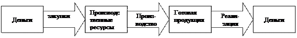 Являясь капиталом, вкладываемым в процесс производства, оборотный капитал фирмы начинает свое движение с авансированного определенной суммы денежных средств Д на приобретение производственных запасов ПЗ: сырья, материалов, топлива и других предметов труда, которые используются с целью производства определенных товаров.