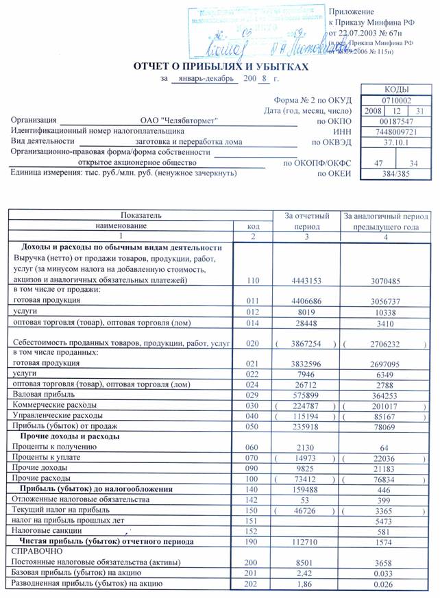 Информационной базой послужила статистическая и годовая бухгалтерская отчетность предприятия ОАО " Челябвтормет " за 2008-2010 гг.