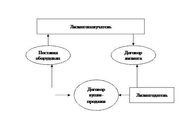 Таким образом, лизинг имеет следующую принципиальную схему (см.рис.1), предусматривающую одновременное заключение, как минимум двух контрактов: договора лизинга (между лизингополучателем и лизингодателем договора купли – продажи (между лизингодателем, то есть лизинговой компанией, и поставщиком имущества)[1,с.171].