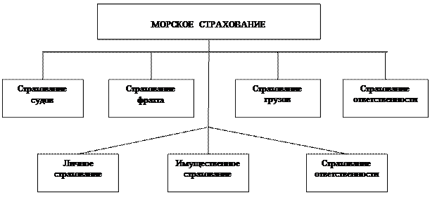 • Добровольное имущественное страхование применяется в отношении таких объектов, как судно, груз, фрахт. Это оформляется путем заключения страхового договора и выдачи морского страхового полиса. В целом классификация морского страхования представлена на рис. 1.