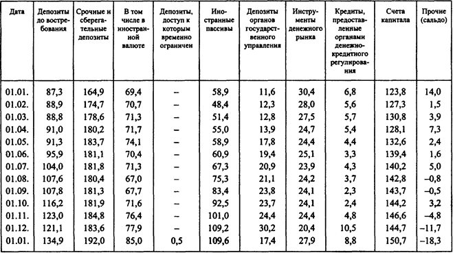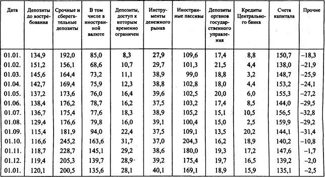 Пассив условного сводного баланса* коммерческих банков страны содержит информацию о составе ресурсов кредитных организаций и их динамике на протяжении года (табл. 1.1).