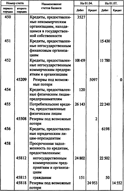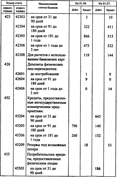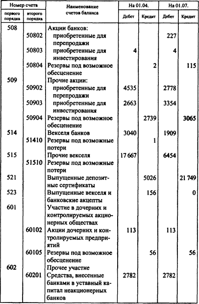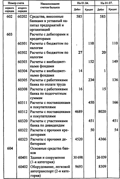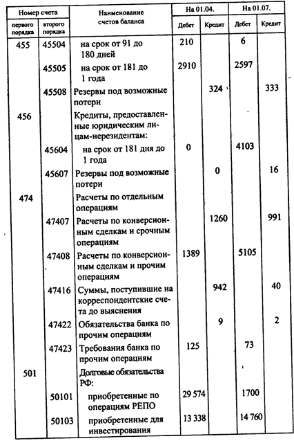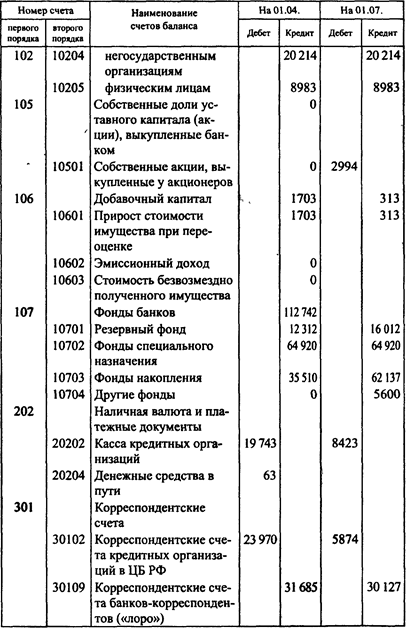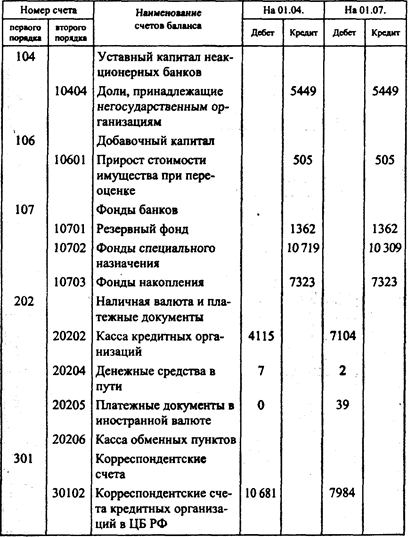 Баланс банка на 01.07. приведен в табл. 1.4.