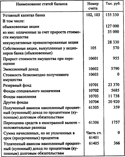 Для расчета суммы собственного капитала по состоянию на 01.03 коммерческий банк использовал данные соответствующих балансовых статей и дополнительную информацию, приведенные в табл. 1.5.