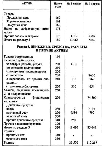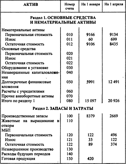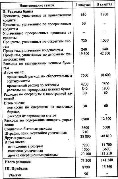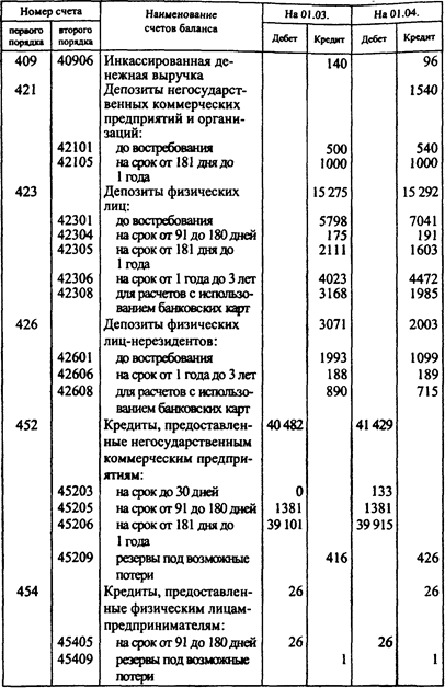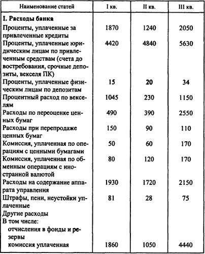 Баланс коммерческого банка на две квартальные даты приведен в табл. 1.3.