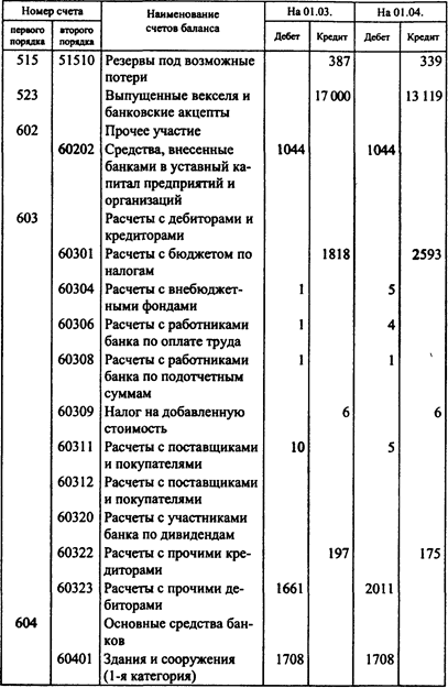 Баланс коммерческого банка на две отчетные даты приведен в табл.1.7.