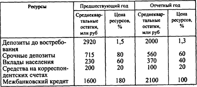 Задачи этого параграфа знакомят с содержанием трех групп ресурсов российских коммерческих банков: собственный капитал, привлеченные ресурсы и прочие. К привлеченным ресурсам относятся депозиты до востребования (средства на расчетных и текущих счетах юридических и физических лиц, корреспондентские счета, открытые для других банков, собственно депозиты до востребования), срочные депозиты юридических лиц, включая депозитные сертификаты, сберегательные депозиты физических лиц (сберегательные вклады и сертификаты), депозиты органов государственного управления, иностранные пассивы (депозиты, кредиты, вложения в ценные бумаги), кредиты, предоставленные органами государственного управления (кредиты Центрального банка), инструменты денежного рынка (межбанковские кредиты, ресурсы, привлеченные выпуском векселей, продажей банковских акцептов), депозиты, доступ к которым временно ограничен (т.е. использование средств невозможно в связи с условиями договора или текущими условиями деятельности банка).
