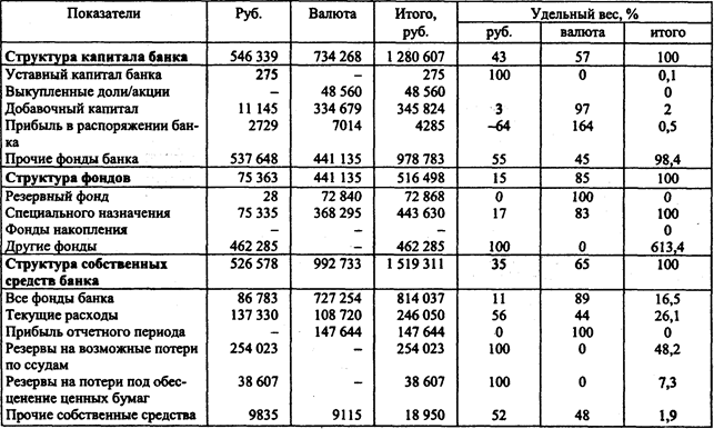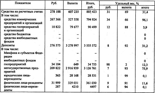 Состав ресурсов в сводном балансе российских коммерческих банков характеризуется данными, приведенными в табл. 1.2.